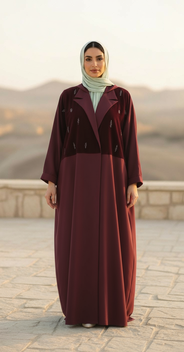 تألّقي بعباية تجمع بين الفخامة والبساطة، مصممة بخامة عالية الجودة تعطيك راحة في اللبس وأناقة في الظهور.