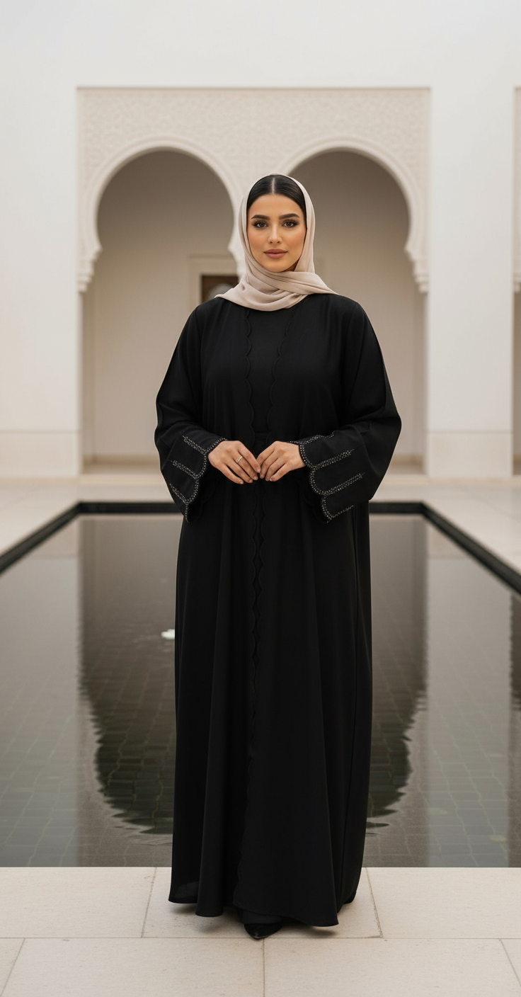 تألّقي بعباية تجمع بين الفخامة والبساطة، مصممة بخامة عالية الجودة تعطيك راحة في اللبس وأناقة في الظهور.