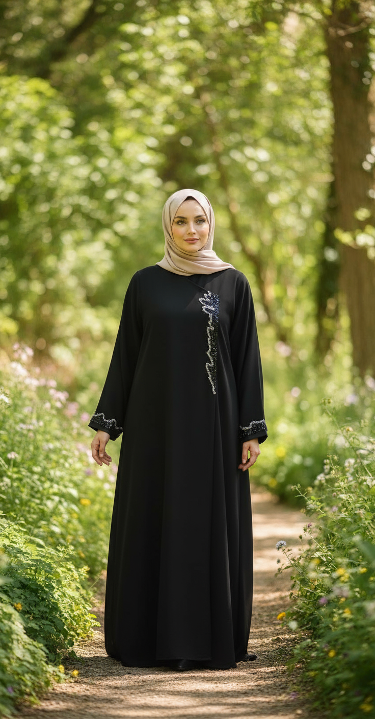 تألّقي بعباية تجمع بين الفخامة والبساطة، مصممة بخامة عالية الجودة تعطيك راحة في اللبس وأناقة في الظهور.