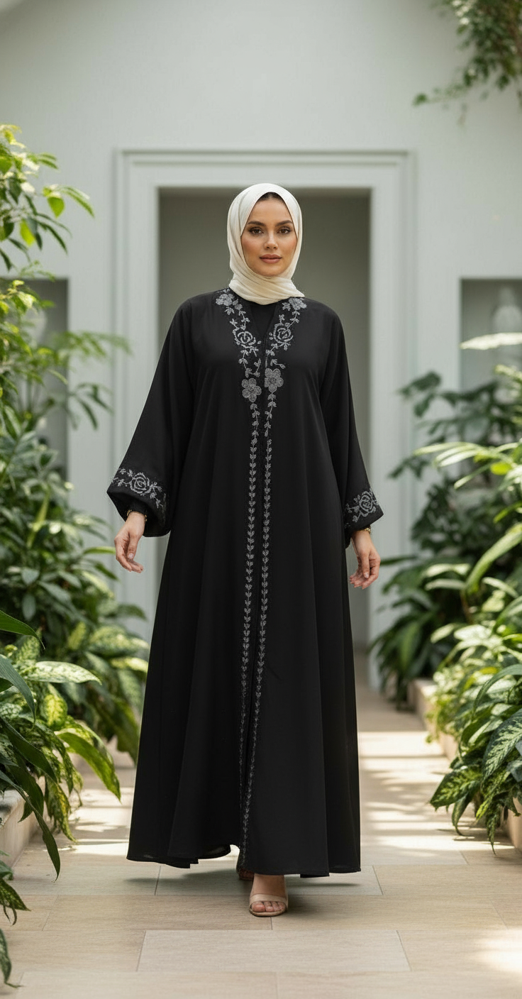 تألّقي بعباية تجمع بين الفخامة والبساطة، مصممة بخامة عالية الجودة تعطيك راحة في اللبس وأناقة في الظهور.