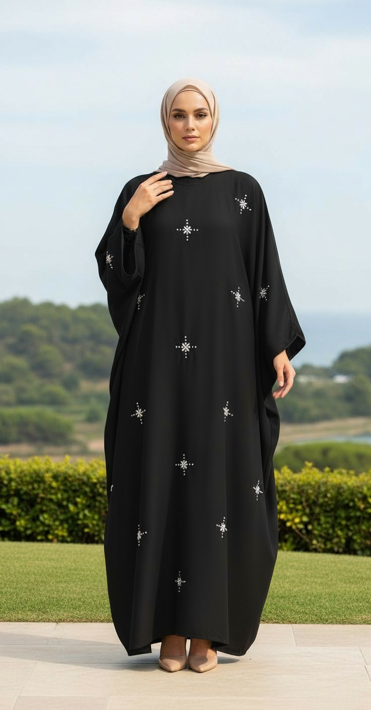 تألّقي بعباية تجمع بين الفخامة والبساطة، مصممة بخامة عالية الجودة تعطيك راحة في اللبس وأناقة في الظهور.