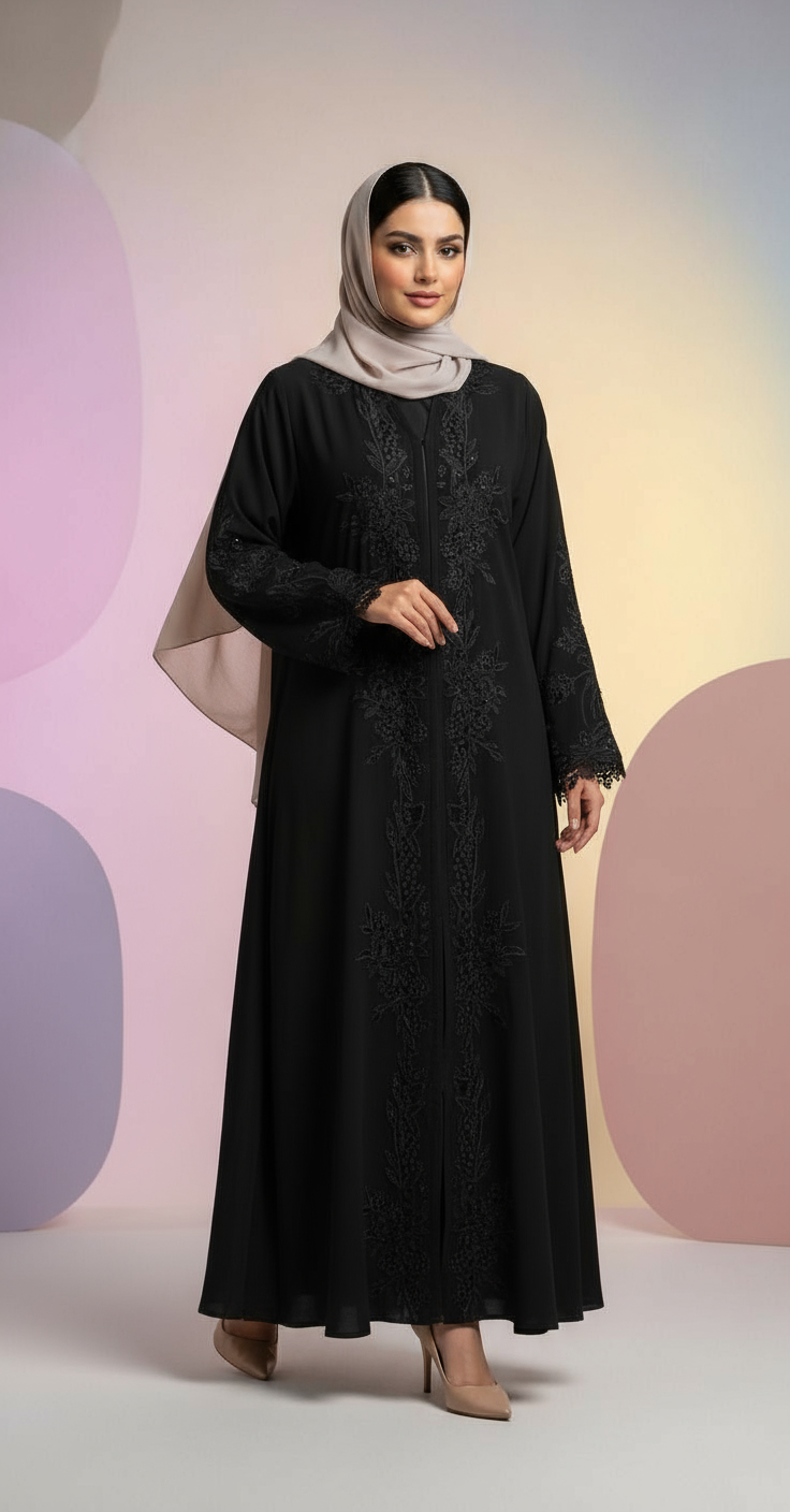 تألّقي بعباية تجمع بين الفخامة والبساطة، مصممة بخامة عالية الجودة تعطيك راحة في اللبس وأناقة في الظهور.