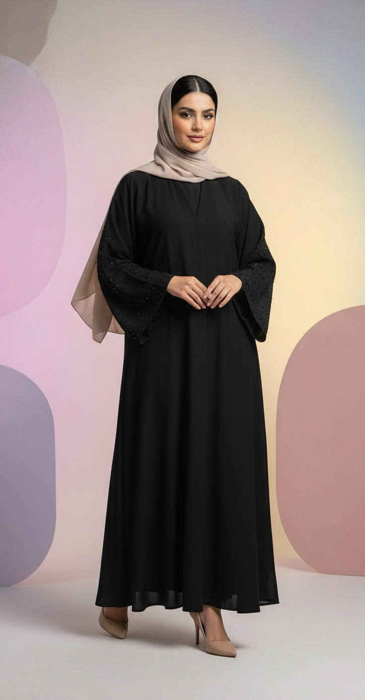 تألّقي بعباية تجمع بين الفخامة والبساطة، مصممة بخامة عالية الجودة تعطيك راحة في اللبس وأناقة في الظهور.