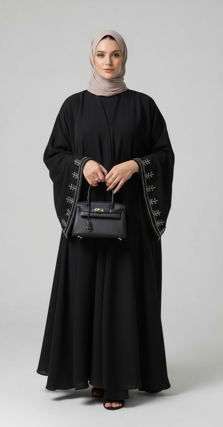 تألّقي بعباية تجمع بين الفخامة والبساطة، مصممة بخامة عالية الجودة تعطيك راحة في اللبس وأناقة في الظهور.