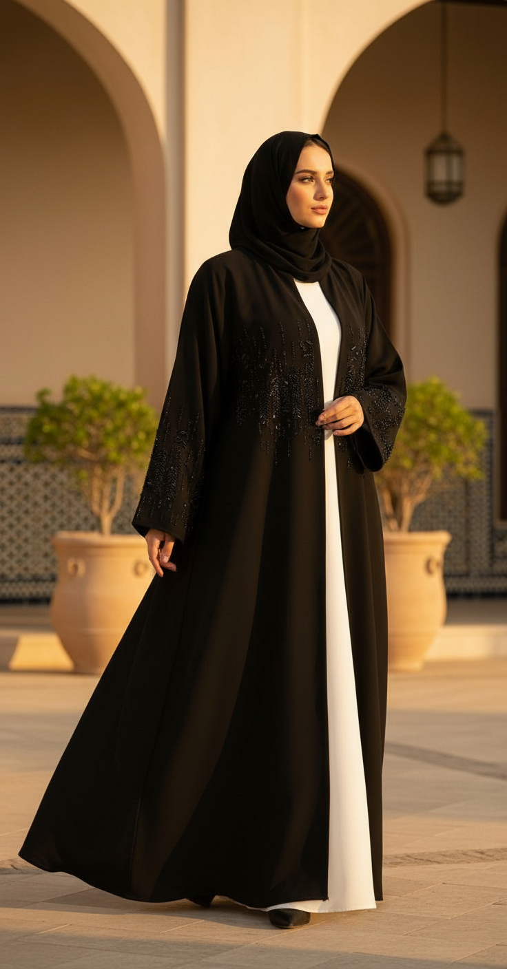 تألّقي بعباية تجمع بين الفخامة والبساطة، مصممة بخامة عالية الجودة تعطيك راحة في اللبس وأناقة في الظهور.