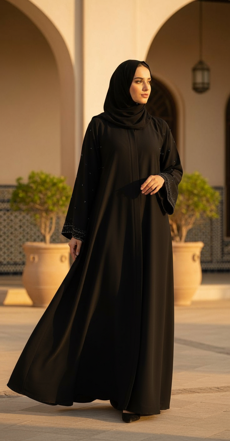 تألّقي بعباية تجمع بين الفخامة والبساطة، مصممة بخامة عالية الجودة تعطيك راحة في اللبس وأناقة في الظهور.