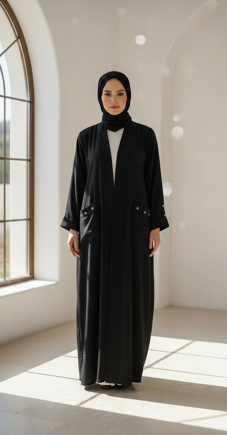 تألّقي بعباية تجمع بين الفخامة والبساطة، مصممة بخامة عالية الجودة تعطيك راحة في اللبس وأناقة في الظهور.