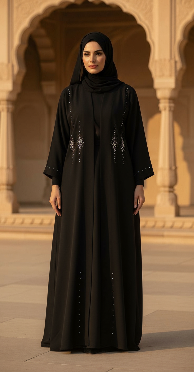 تألّقي بعباية تجمع بين الفخامة والبساطة، مصممة بخامة عالية الجودة تعطيك راحة في اللبس وأناقة في الظهور.