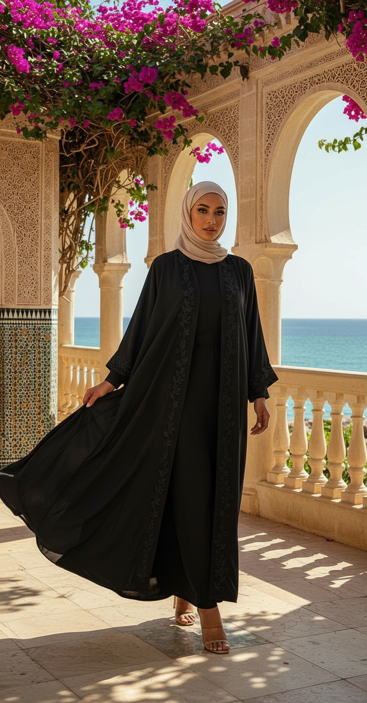 تألّقي بعباية تجمع بين الفخامة والبساطة، مصممة بخامة عالية الجودة تعطيك راحة في اللبس وأناقة في الظهور.
