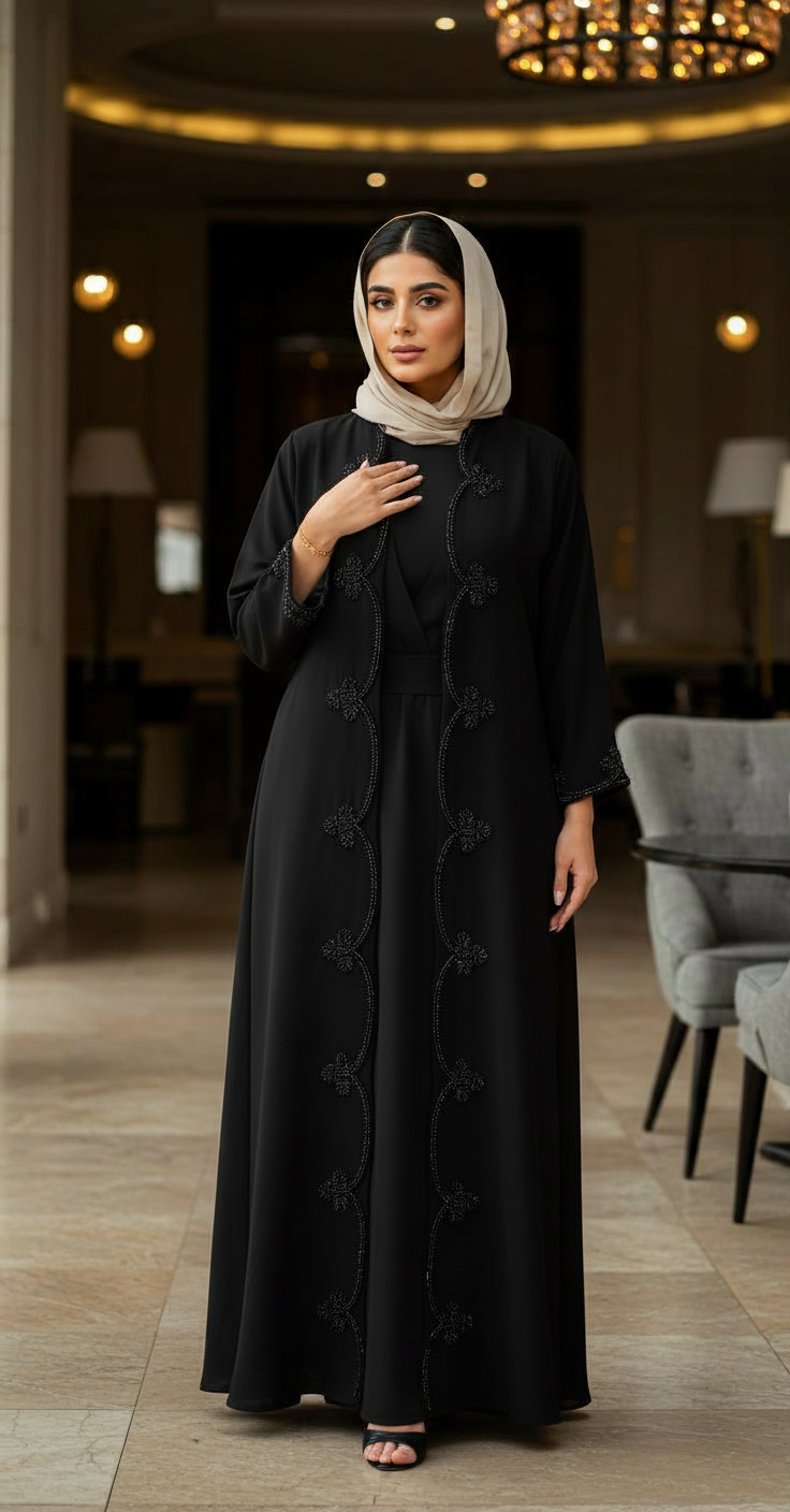 تألّقي بعباية تجمع بين الفخامة والبساطة، مصممة بخامة عالية الجودة تعطيك راحة في اللبس وأناقة في الظهور.