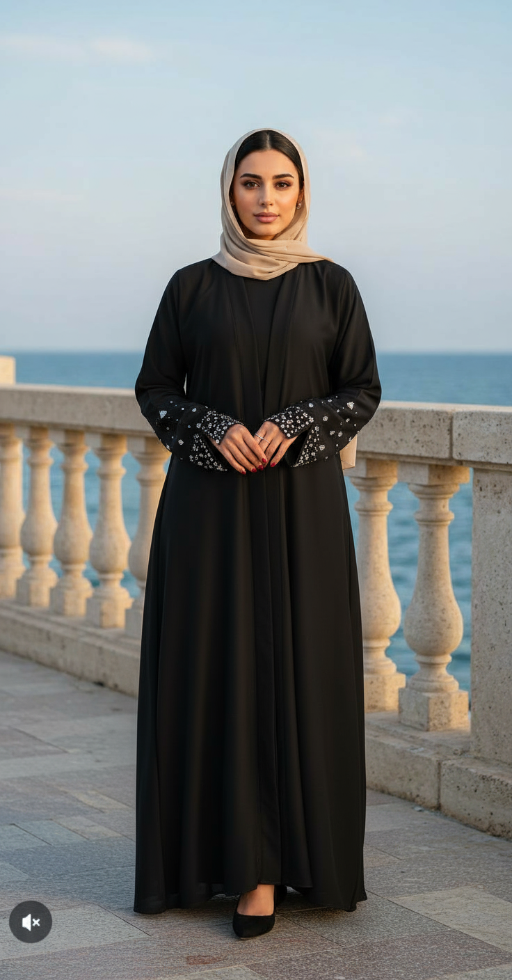 تألّقي بعباية تجمع بين الفخامة والبساطة، مصممة بخامة عالية الجودة تعطيك راحة في اللبس وأناقة في الظهور.