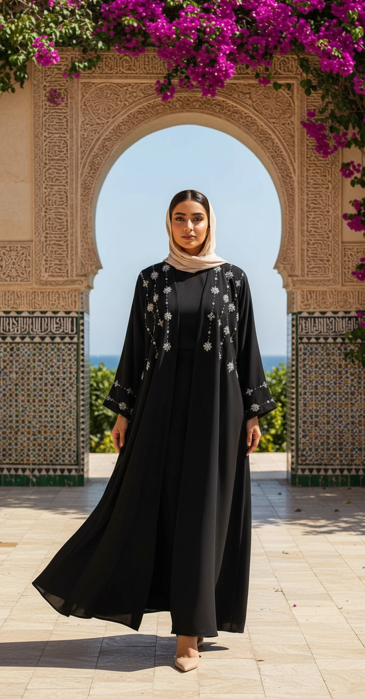 تألّقي بعباية تجمع بين الفخامة والبساطة، مصممة بخامة عالية الجودة تعطيك راحة في اللبس وأناقة في الظهور.