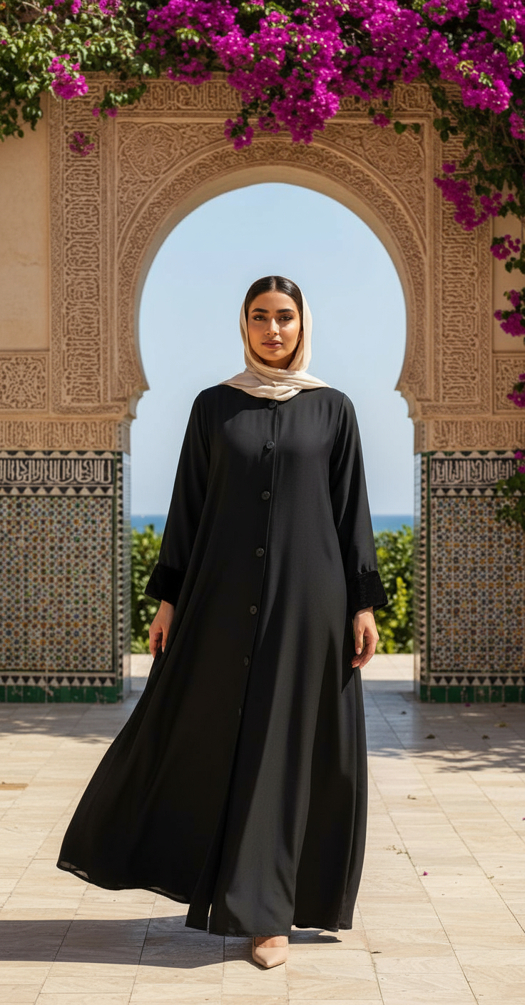 تألّقي بعباية تجمع بين الفخامة والبساطة، مصممة بخامة عالية الجودة تعطيك راحة في اللبس وأناقة في الظهور.